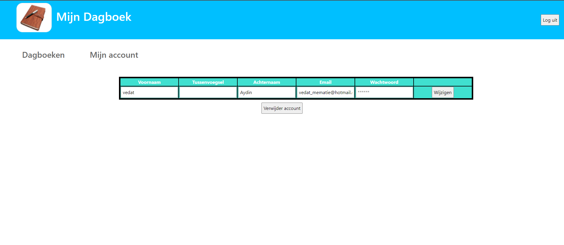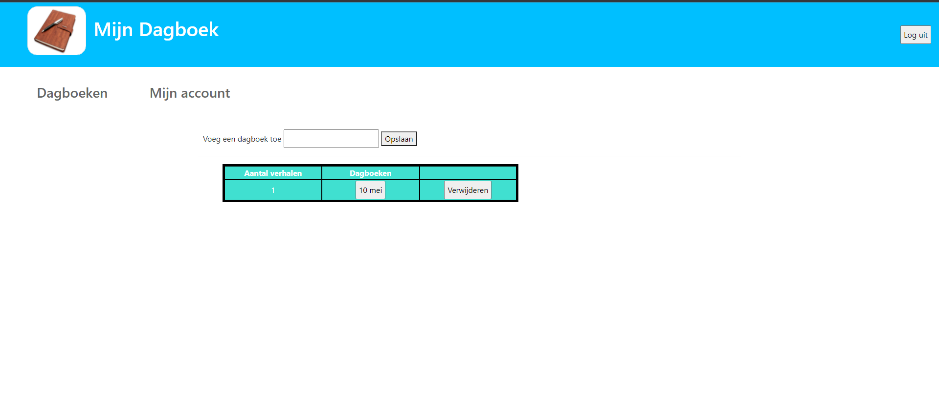 Op deze pagina kan je een dagboek aanmaken of verwijderen. Dan wordt alles in dat dagboek ook verwijderd.