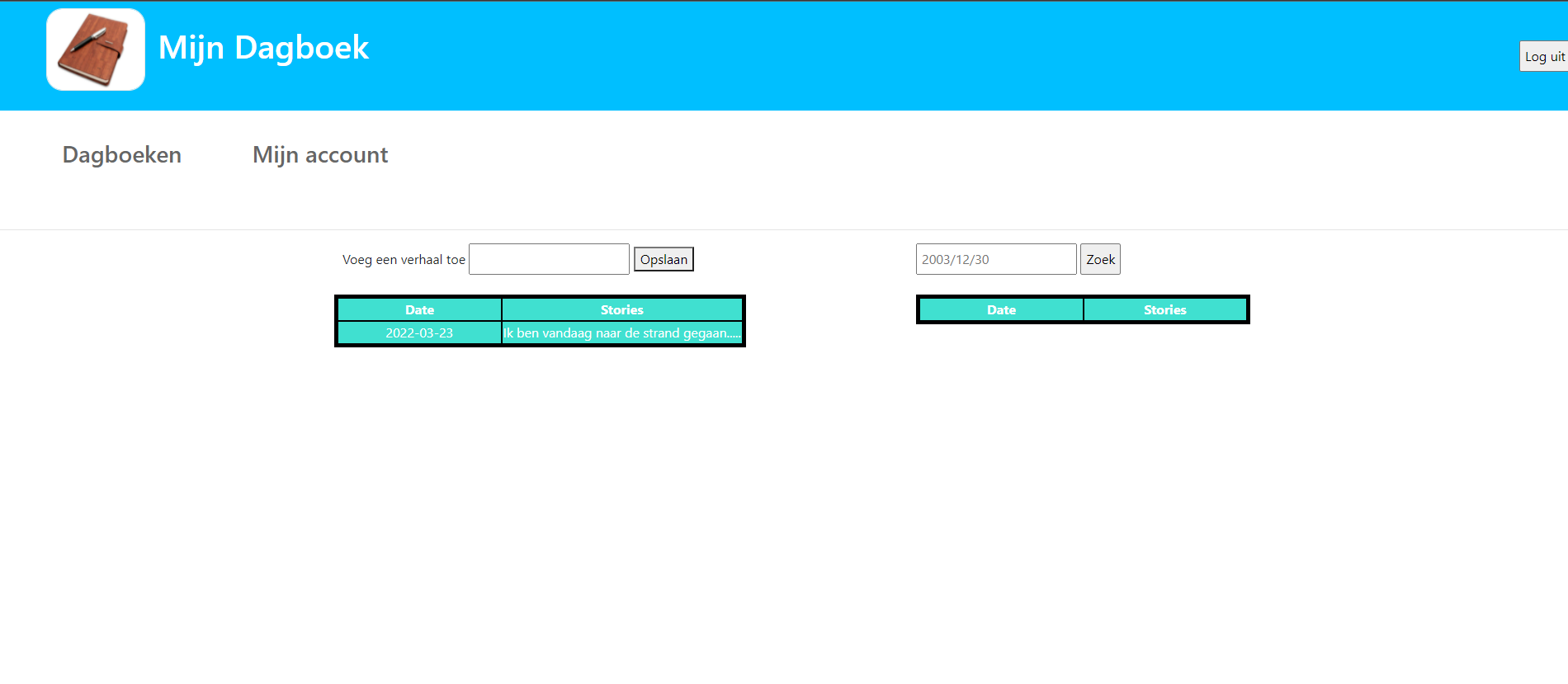 Op deze pagina kan je verhalen aanmaken in de dagboek. Je kan dat verhaal terug vinden op datum.