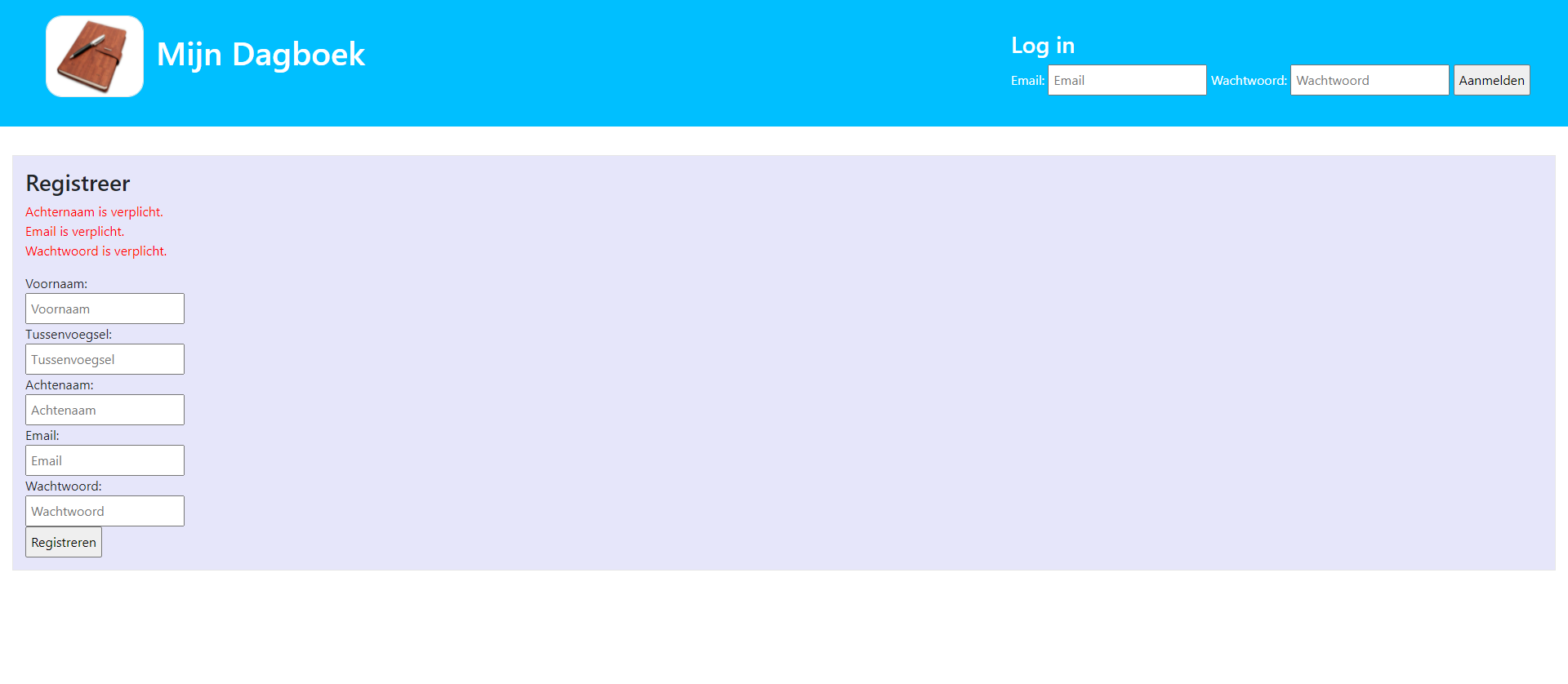 Als je verkeerd inlogt of velden niet hebt ingevoerd krijg je een melding. Via de link binnenkomen werkt natuurlijk ook niet.